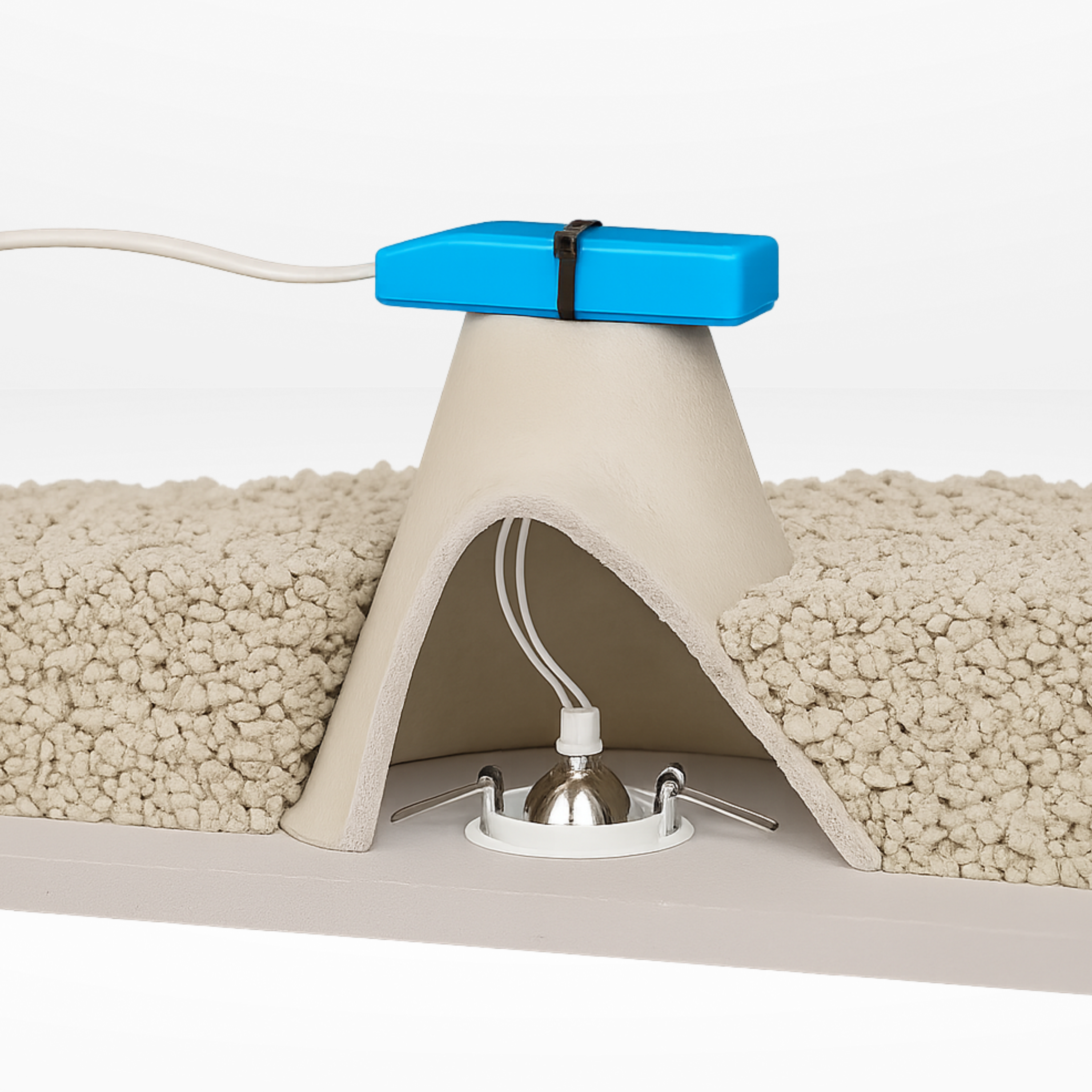 The Astro LC Loft Cone is a 30-minute fire-rated enclosure designed to protect recessed downlights in loft spaces. Installed over light fittings, it helps prevent the spread of fire and smoke through loft voids while also allowing safe dissipation of heat.
